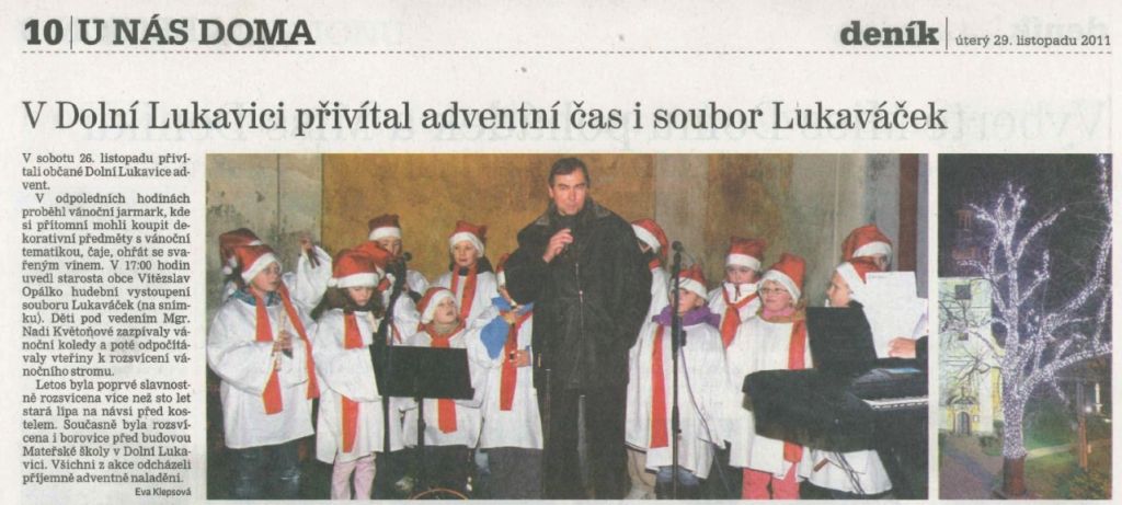 V Dolní Lukavici přivítal adventní čas i soubor Lukaváček