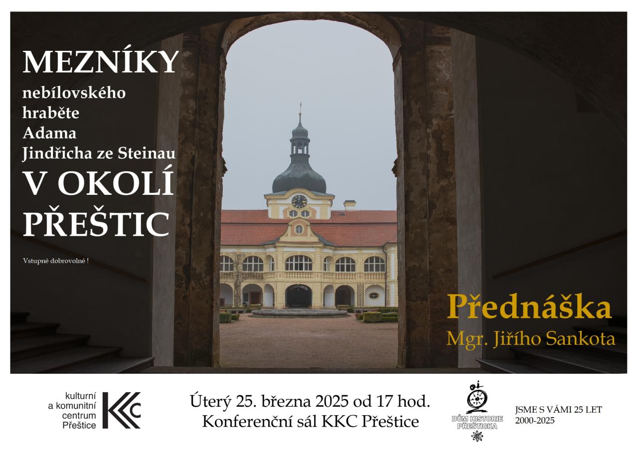 Přijďte na konferenci věnovanou osobnosti hraběte Adama Jindřicha ze Steinau. Akce proběhne 25. března 2025 od 17 hodin v Konferenčním sále KKC Přeštice. Vstupné je dobrovolné.