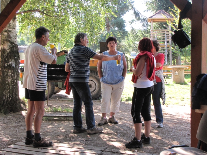 Krásný sobotní den 8. září využili dolnolukavičtí turisté a vyšli si na pochod. Od kostela sv. Petra a Pavla vedla trasa kolem hřbitova na kopec Hořice, odtud ke kříži , který stojí u cesty vedoucí z Horní Lukavice do Lišic. Poté stoupali k Hradčanům. Dále vedla cesta lesem Vysoká až ke sv. Trojici, odtud pak směrem k Předenicům. A z Předenic už to byl jen kousek lesem do Snopoušov, kde je čekalo příjemné posezení ve venkovním altánu s grilovanými dobrotami a řízným pivem k tomu. I když, vzhledem k četným akcím v okolí, šla jen malá skupinka nadšenců, nebyla nouze o legraci. Všichni byli okouzleni malebnými zákoutími Vysoké, jedna účastnice stihla cestou nasbírat spoustu hub, z nich největší radost jí udělaly parádní hřiby a druhá účastnice šla statečně celou trasu v pantoflích.