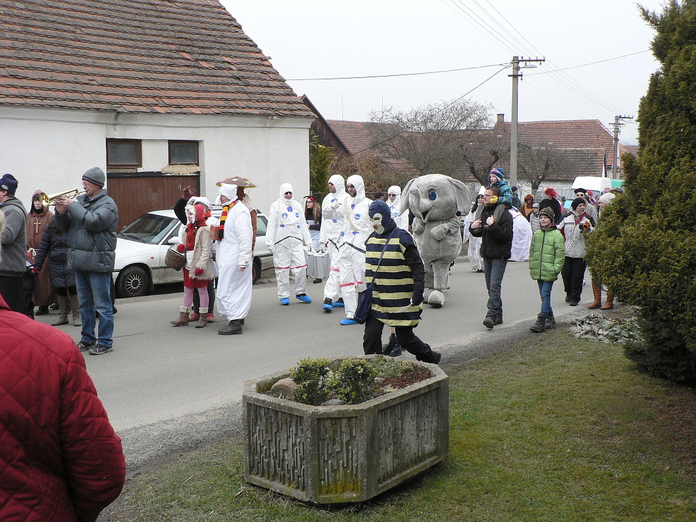 Už podesáté se shromáždil u hospody „U Bílé růže“ houf maškar a obecenstva, aby společně prošli Dolní Lukavicí a Lišicemi. Jistě dobrou polovinu tvořila osvědčená parta z Lišic a zbytek tvořily skupiny lukavických nadšenců. S velikou radostí opět mezi sebou uvítali i přátele z Přeštic - členy ochotnického spolku Úhlavan. A jaké masky jste mohli obdivovat? Např. krále, koně i s jezdcem, lukavický tým NASA, tajnou ruskou policii ze 70. let, Křemílka a Vochomůrku, pohlednou Marfušu, které nechybělo lízátko, malou Červenou Karkulku a Valentýnka (masopust byl na sv. Valentýna), medvědici, jeptišky, houby, povedeného rabína i se zlaťáky, gorilu, slona a další.