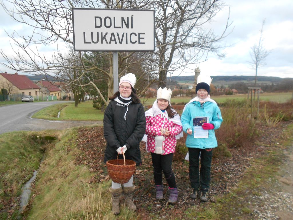 Začátkem ledna prošli tři králové obcemi Dolní Lukavice a Lišice. Dolní Lukavice je vždy rozdělena na dva „vybírací okrsky“ a dvě tříkrálové party. V neděli 4. ledna „starou Lukavici“, lokalitu za řekou a park obešla Alice Netrvalová a v sobotu 10. ledna jsem s dětmi obešla Pajzovnu, bytovky a ulici od Sokolovny dolů. Koledoval: Kubík Netrval, Adam Brada, Julča Bradová, Lucka Žofáková a Adélka Nová. Nově také začali s koledováním v Lišicích. Koledování se ujala Štěpánka Lexová, která ves s děvčaty obcházela pět hodin – začaly ráno a pokračovaly po obědě. Koledovaly: Anna Julie Lexová (Kašpar), Dominika Turečková (Melichar) a Eliška Lexová (Baltazar). Děkujeme všem, kteří přispěli a věříme, že i v příštích letech tato sbírka bude na Lukavicku pokračovat a třeba se ještě rozšíří o koledníky v Krasavcích a Snopoušovech.