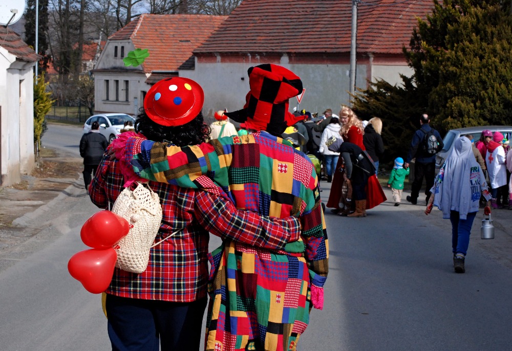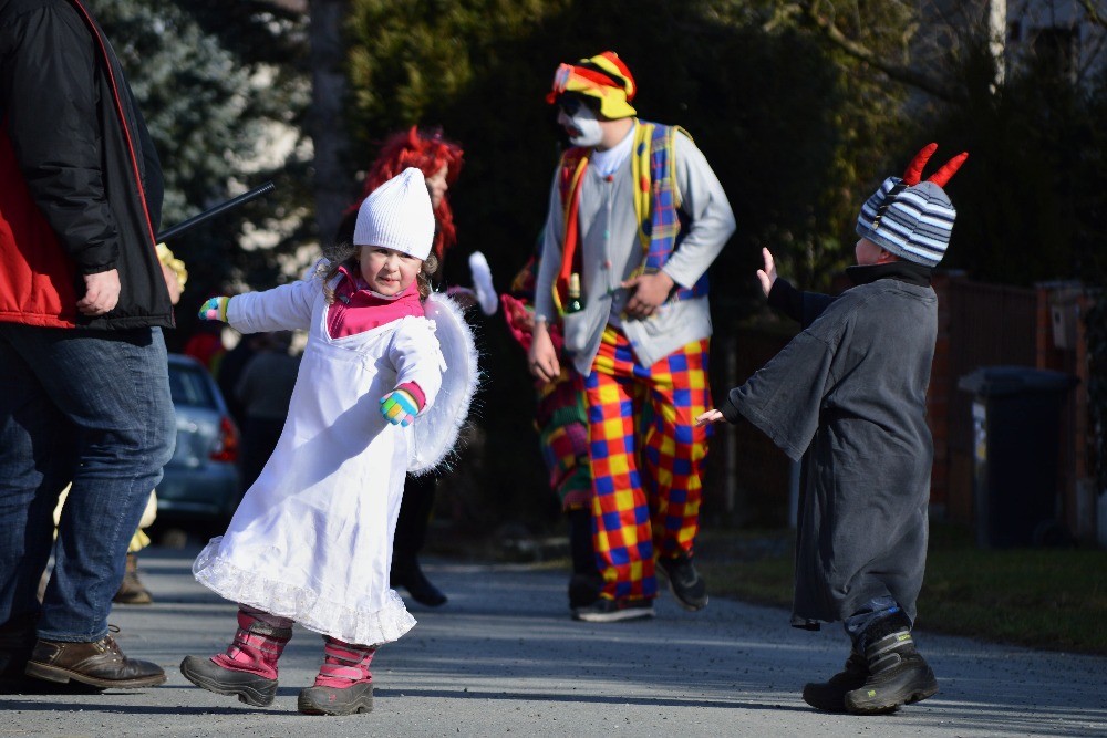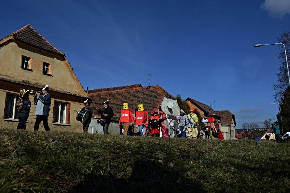 Veselý, se spoustou originálních masek, s novou trasou a novými zastaveními… Ale popořadě: V sobotu 25. února 2017 se účastníci tradičně sešli v 10 hodin před hostincem U Bílé růže v Dolní Lukavici, kde pan starosta maškarám svěřil klíče od obcí a dovolil, aby se vydaly na cestu. Průvod za hudebního doprovodu Hájenky z Hájů si to ale namířil nejprve k autobusu, aby se nechal odvézt do Lišic. Tam již čekalo několik hospodyněk, aby veselému průvodu nabídly chutné občerstvení. Na návsi se pak přihlížejícím maškary předvedly a do not Hájenky také zatancovaly. Po návratu do Dolní Lukavice se musely masky náležitě posilnit – výborný oběd pro ně připravil pan starosta s Markem Maňourem a Tomášem Harvišem a se servírováním jim ochotně pomáhala Eliška Harvišová. Do slunečného odpoledne se na putování obcí vydalo celkem 35 masek. Jaké byly? Mezi ty nej určitě patřila originální dvojice řezníků se dvěma růžovými pašíky v neckách, parta veselých klaunů, malý mysliveček s flintou přes rameno, legáčci, vosa s beruškou, hradní paní, kočky, indiánky, sličná princezna s rytířem a dráčkem, čertík s andílkem a spousta dalších... Cesta byla náročná, zastavení mnoho a veselých setkání ještě víc. Poděkování patří jistě všem - organizátorům, divákům, hospodyňkám a hospodářům, kteří si s přípravou bohatého pohoštění dali velkou práci, i jednotlivým účastníkům. Bez nich by přece masopust nebyl masopustem! A ten 12. se opravdu vydařil!