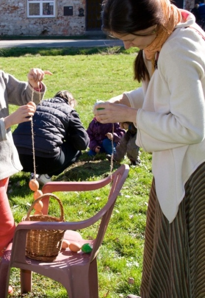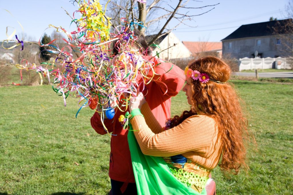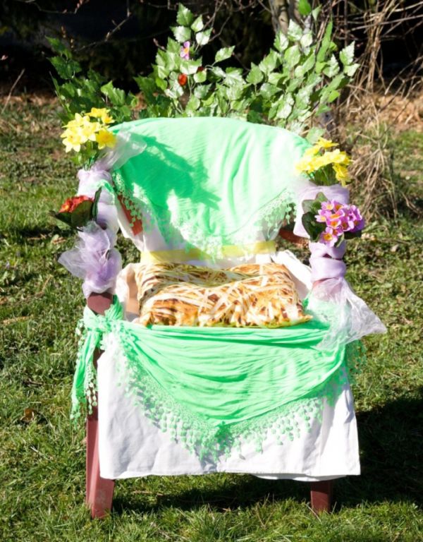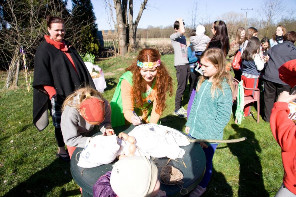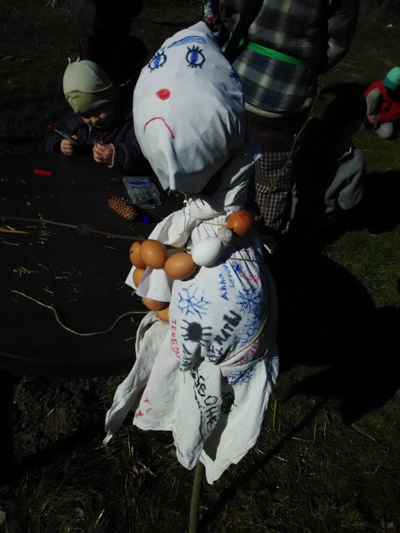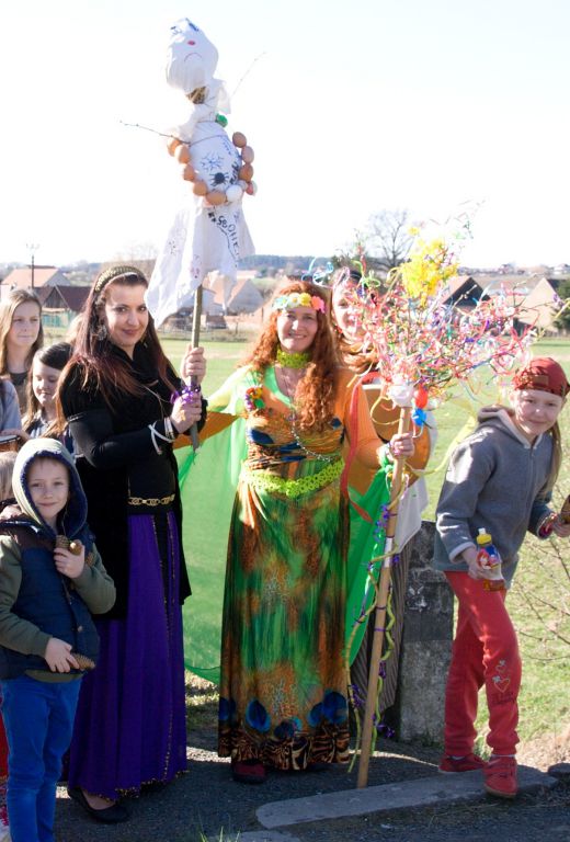 26.3. jsme v naší malebné vesničce přivítali jaro jak se patří! Každý dostal při příchodu větvičku „ líta“ jako symbol jara , ženy kočičky a muži vrbu, kterou pak dle tradice měli zapíchnout na kraj svého políčka, aby měli úrodu. Společně jsme vytvořili postavu Morany ze slámy, ozdobili žezlo pro Vesnu – bohyni jara a vyzdobili trůn. V kruhu jsme si pak pověděli něco o tradici našich předků. S dětmi jsme se nejvíc těšili na slavnostní předání žezla vládkyně zimy Morany (H. Böhmové) bohyni jara Vesně (Š. I. Lexové). V průvodu za zvuků bubínku a chřestidel jsme pak vyprovodili Moranu na most, rozloučili se se zimou, zapálili ji ( tu slámovou ) hodili do řeky a nakonec ji zamávali. Ostatní ještě po ní hodili šiškami, skořápkami či prázdnými šnečími ulitami. Děkuji všem zúčastněným, H. Böhmové za spolupráci a i jarnímu sluníčku, které se na nás zhora usmívalo. Těším se s vámi opět na další akci jarních tradic projektu „ Zpět k tradicím“ Otevírání studánek 28.5.