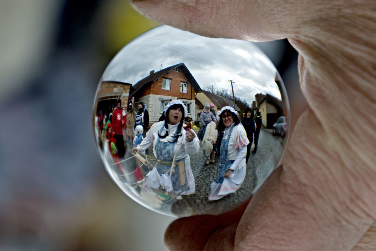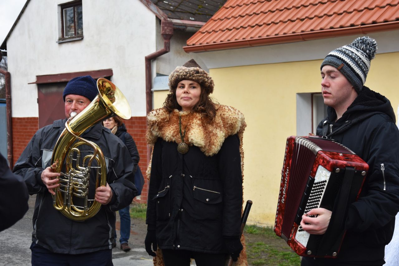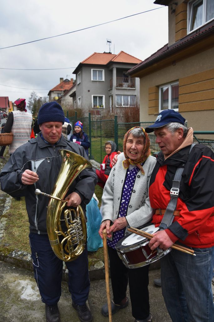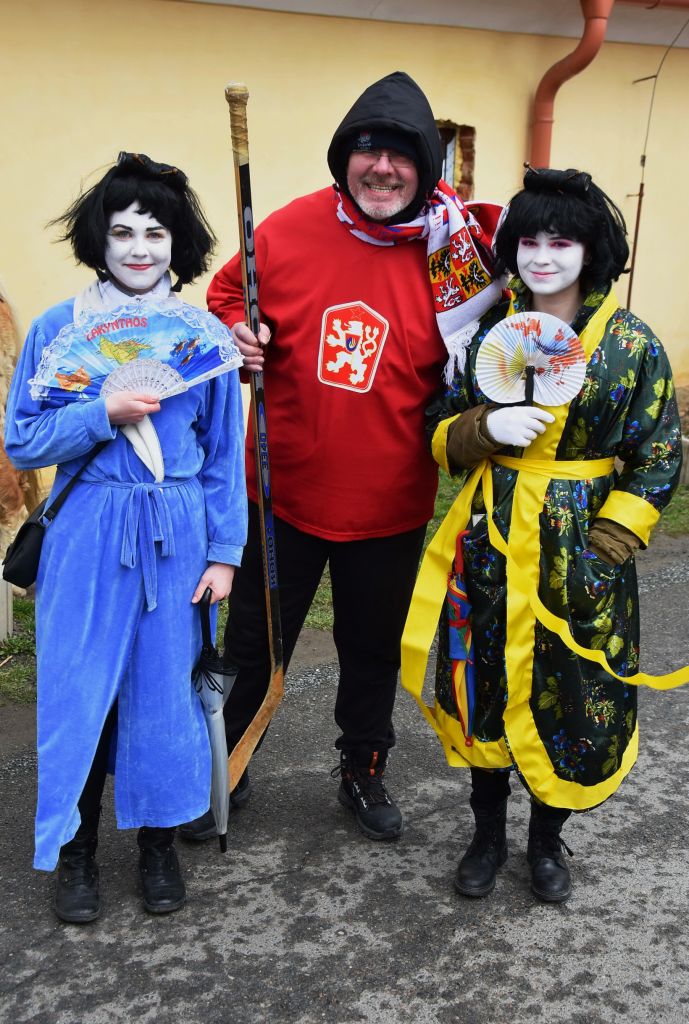 A je to tady: sobotní dopoledne je zimavé, větrné a deštivé, to máme za trest, že nectíme tradice! Přes nepřízeň počasí se plný autobus masek a "doprovodné vozidlo" (tedy dodávka pana Hrubého) vydal na cestu do Lišic. A tam nastalo rozčarování, protože když po obvyklých zastávkách na okraji obce došel průvod ke kapličce, čekalo na něj jen asi deset Lišičáků, těch nejvěrnějších diváků. Ostatní prý špatně pochopili program na plakátu a domnívali se, že autobus jen přijede pro masky z Lišic a masky do obce vůbec nezavítají... ŠKODA, ŽE MASKY NEPŘIŠEL PŘIVÍTAT ANI NIKDO ZE ZASTUPITELŮ. Inu, čím je vyspělejší a dokonalejší technika, tím je horší dorozumívání mezi lidmi.