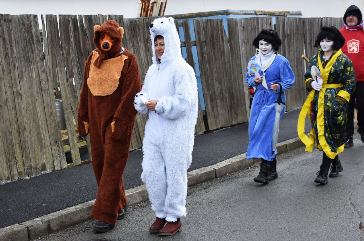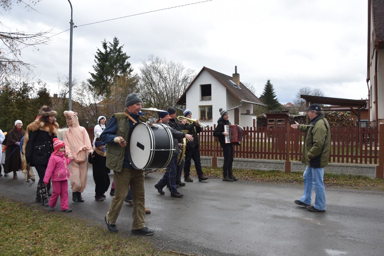 Každoročně je to stejné: Kdo jde? Za co a s kým půjde? Přemýšlení a domlouvání a vyjednávání a "tajnosti"do poslední chvíle. A všechno jenom s jediným cílem: Pobavit a překvapit diváky i sebe. Letos byl opět trochu pozměněn program, nejprve byla naplánovaná cesta do Lišic, tam po obvyklém představení masek na návsi odjezd zpátky a pak teprve tradiční zahájení na obvyklém místě v obvyklou dobu, tedy v Lukavici u hospody v 10.0O. V předešlých letech se natěšení diváci sešli v deset u hospody a sotva si mohli masky prohlédnout a důkladně zdokumentovat, průvod došel ke klubovně. A kapela i maškary naskákali do autobusu a ufrnkli jim před nosem do Lišic.