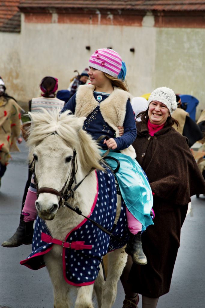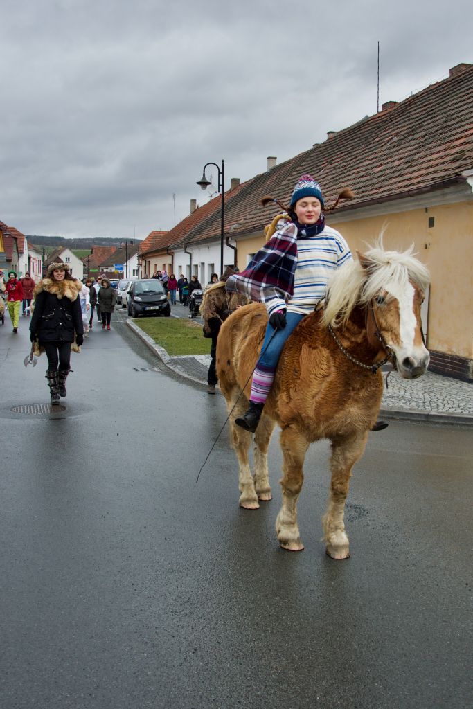 I ostatní masky byly nápadité, vtipné a dlouho pracně připravované. Veselé tenisky "Levej"a "Ta pravá" , dokonale vybavení keltští bojovníci, pohádka o Karkulce naruby (Karkulka , babička a vlk s myslivcem v břiše), právník z Plzně, meloun, Masopust s Masopustíčkem, celá spousta zvířátek, princezna Pepa, vodník, kominík, hasič, turecký sultán ruku v ruce s jeptiškou nebo dvě nádherné gejši (Lucka a Teri), které si prý přivezli hokejsté z Nagana. Jednou z nejobdivovanějších masek byla zahradnická rodinka (Plasovic) s plným kolečkem výpěstků. Ta nejkrásnější kytička Terezka se občas povozila v tepee a na oplátku pozvala indiánskou holčičku do svého kolečka a medvěd je obě pěkně povozil. Lukavice je bohatá obec a tak se v průvodu objevili už dva koně! Mezi nejobdivovanější členy průvodu patřil i letos oblíbený poník Hermelín, který trpělivě na hřbetě vozil děti a koník Bertík, který se ovšem dnes jmenoval Alfréd, protože na hřbětě nesl svou paní Pipi Dlouhou Punčochu z Vily Vilekuly s opičkou Panem Nelsonem na rameni. (Bára Babková na koníkovi přijela z Předenic). My staré maškary jsme zamáčkly dojetím slzu v oku, vždyť Pipi byla hrdinkou našeho dětství. Masky byly letos opravdu pěkné a dalo velikou práci je připravit. To pak trochu zamrzí, když většina lidi ani nevykoukne z okna.