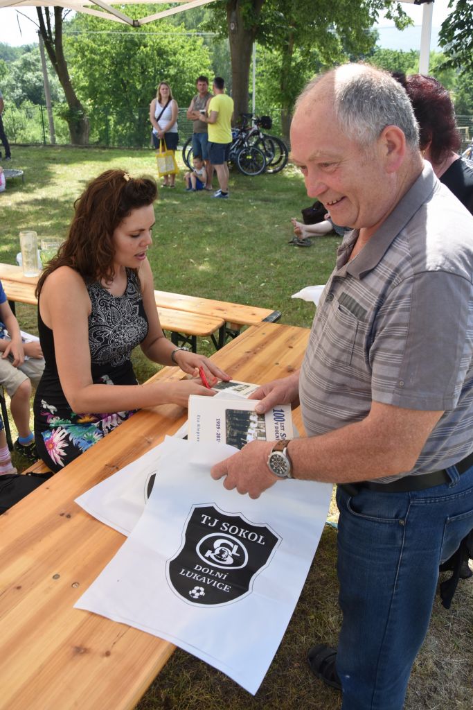 Program byl pestrý a přilákal všechny věkové kategorie místních i přespolních obyvatel. V sobotu dopoledne slavnost probíhala ve venkovním areálu sokolovny. Velká část interiéru i exteriéru byla po čerstvé rekonstrukci. Po stručném úvodním slovu předsedy Václava Pelce obsáhleji v sokolské uniformě pohovořil Pavel Hajžman, člen výboru TJ, který po dlouhém potlesku předal slovo hospodáři TJ Radku Vrbovi. Krátce poté čestná uznání dostali členové TJ (Jaroslav Babka – in memoriam, Zdeňka Babková, Ing. Zdeněk Kot, Jaroslav Stehlík). Všichni obdrželi pamětní list a knihu 100 let sportu v Dolní Lukavici, která byla záhy pokřtěna. Kmotrem knihy se stal pravnuk nejdéle úřadujícího starosty tohoto spolku Ing. Václav Turek, který po celou dobu dopoledního programu držel v sokolské uniformě se svou manželkou Gabrielou čestnou stráž s českou vlajkou. Po křtu knihy následovala autogramiáda. Kniha šla rychle na odbyt. Při nákladu 500 ks se za dva dny prodalo necelých 200 výtisků! Samozřejmě že zde nechyběl ani hudební soubor Lukaváček (pod vedením Mgr. N. Květoňové, která oba dny oslavy také moderovala a ještě stihla vystoupit se ženami z TJ Sokol Přeštice!) a taneční vystoupení místních děvčat - Magic Girls (pod vedením Š. Lexové). Tentokrát tanečnice zaujaly jako roztleskávačky a předvedly moderní street dance. Překvapením bylo slavnostní odhalení pamětní desky na lukavické sokolovně (na desce je nápis: „Na památku zakladatelům Sokola Dolní Lukavice 100 let“). Po tomto aktu zazněla česká národní hymna. Program krátce po poledni zpestřili žáci z místní ZŠ. S paní ředitelkou Mgr. L. Hajšmanovou nacvičili svižnou ukázku jejich perfektní pohybové zdatnosti. Skladbu „Cesta“ z XVI. Všesokolského sletu (z roku 2018) bravurně předvedly ženy z TJ Přeštice a TJ Dobřív, které byly i podruhé odměněny dlouhým potleskem za secvičení historické skladby z roku 1932. Z TJ Sokol Přeštice cvičily také děti (ve věku 7-10 let). Velkým překvapením bylo vystoupení současných členů TJ, kteří nacvičili historickou skladbu ze sletu. Jelikož program neměl chybu a bylo zajištěno bohaté občerstvení, mnozí zůstali i na vystoupení dechového a tanečního orchestru ze Švihova - Skalanka. Odpoledne se areál sokolovny zaplnil převážně dětmi, které měly možnost zapojit se do sportovních her, vyšplhat na vysokou lezeckou stěnu, užít si skákacího hradu či pěnovou party. V 16 hodin začala hrát kapela Asfalt, kterou ve 20 hodin vystřídala Ponorka band. Taneční parket se brzy zaplnil, ve stanech to žilo a k radosti všech přítomných přispělo i to, že bouřka, která se hnala od Přeštic, nás nakonec minula. Celou sobotu provázelo krásné slunné a letní počasí.