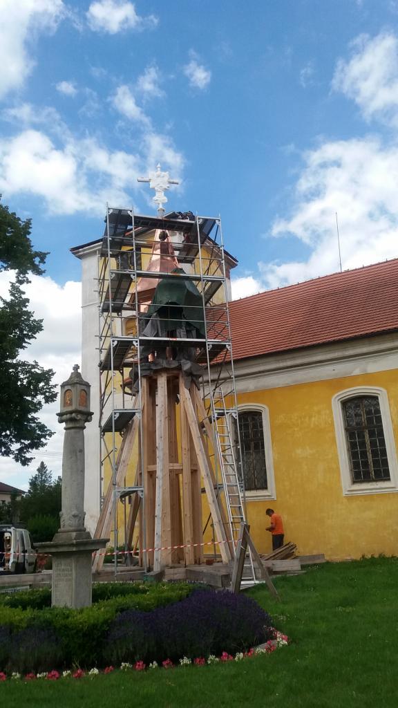 V loňské roce byla provedena nosná konstrukce věže, pozlacen kříž a makovice. V červnu a červenci 2020 proběhly práce na lucerně, byla osazena římsa a provedeno bednění věžičky. Horní část věže a byla oplechována, zhotoveny ramenáty a provedeno bednění, které má definitivní tvar věže. Tím letošní etapa končí. Před zabedněním báně byla konstrukce znovu ošetřena fungicidním nátěrem.