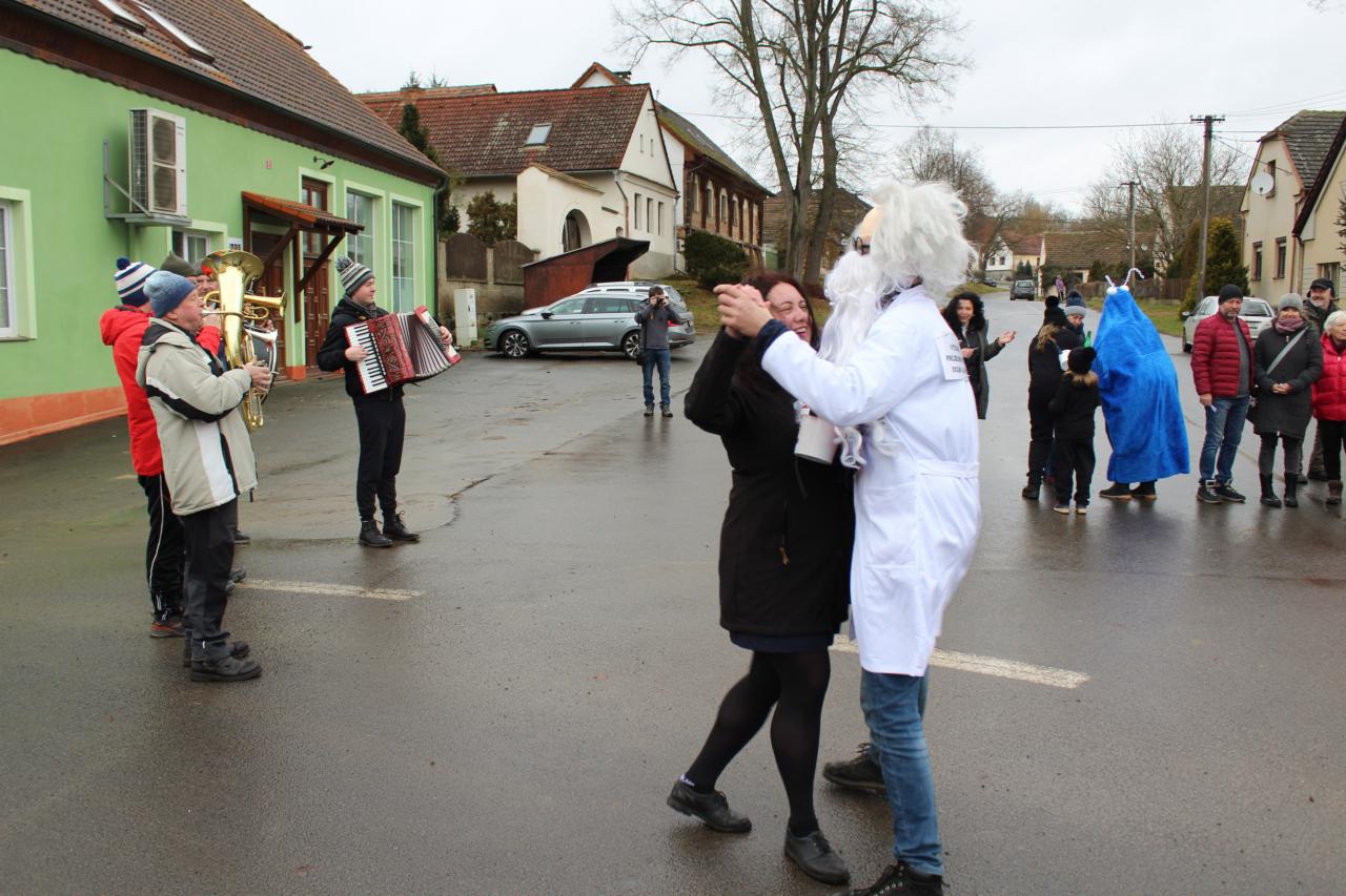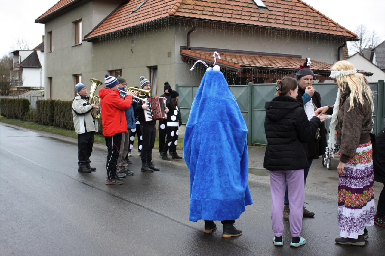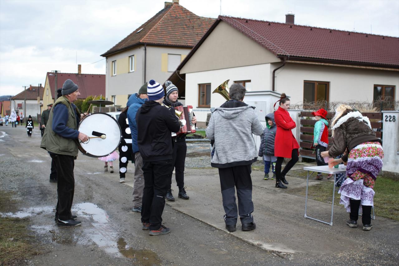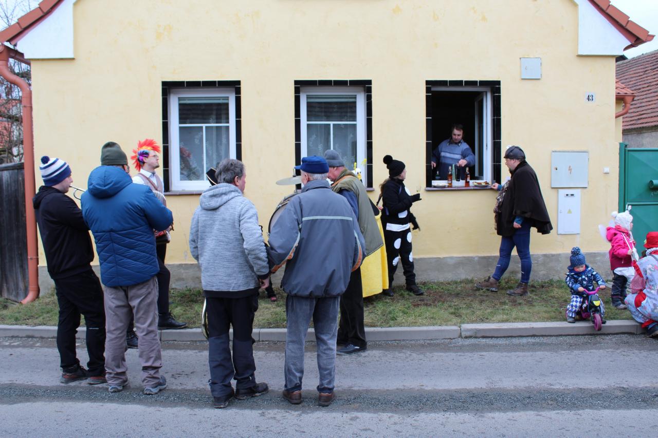 Tak to nakonec všechno hezky skončilo. Je smutným paradoxem dnešní doby, že diváků i masek bylo pramálo. Ale než průvod dorazil do hospody, již kolovaly po sítích fotky a videa. Tak to by se příště mohl masopustní průvod pořádat po netu, na způsob distanční výuky, ne? |Kdo by se plahočil až na ves?