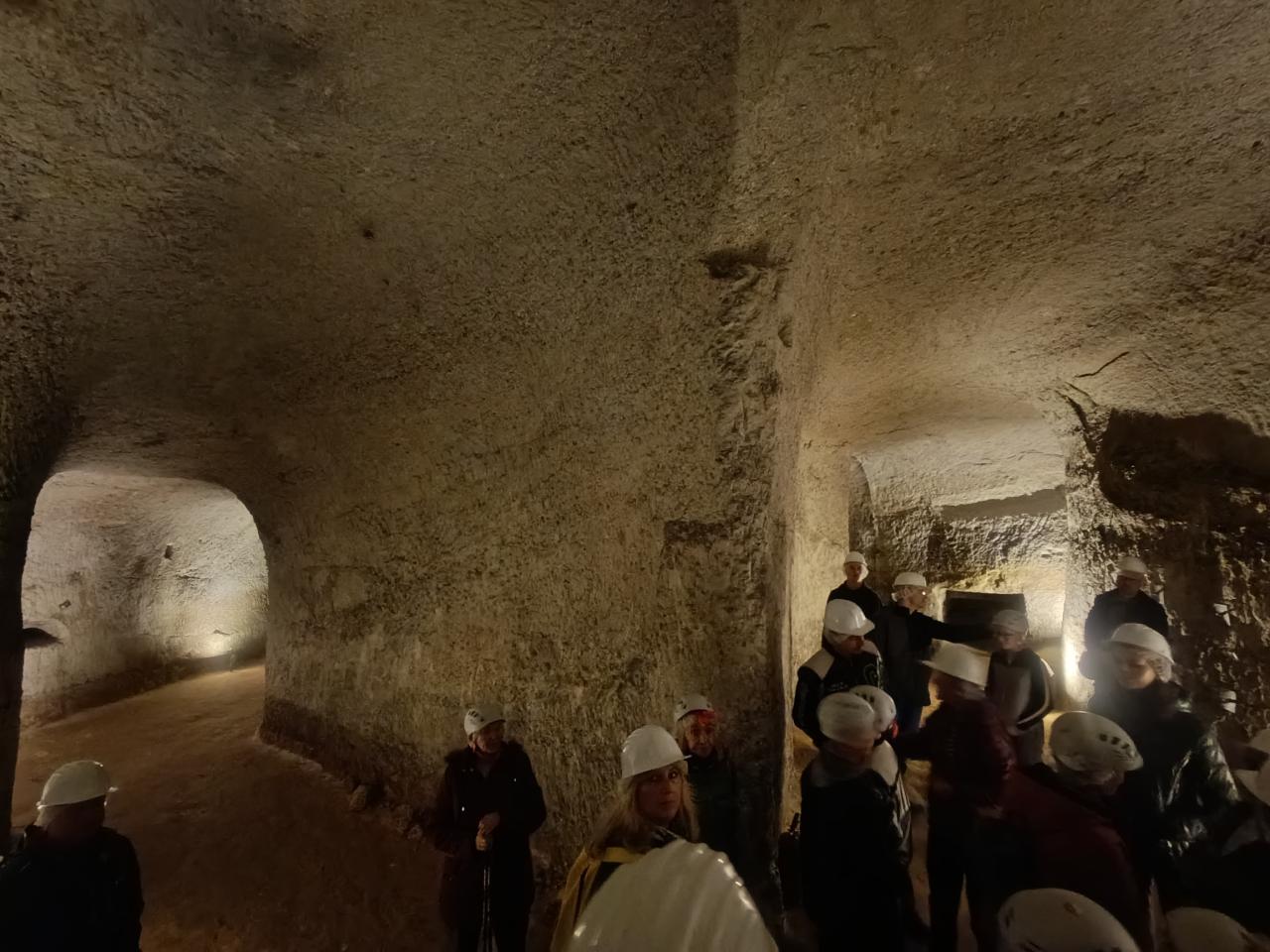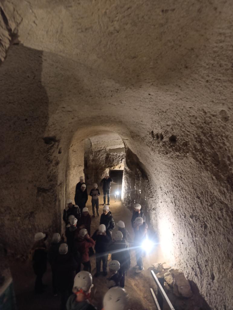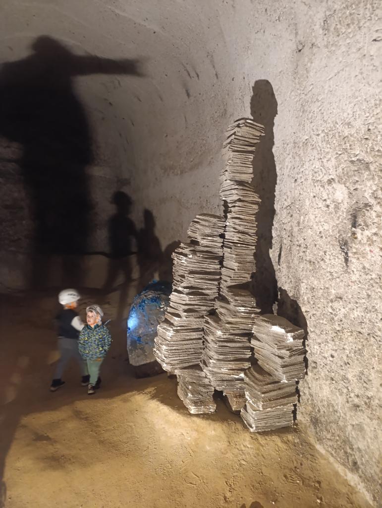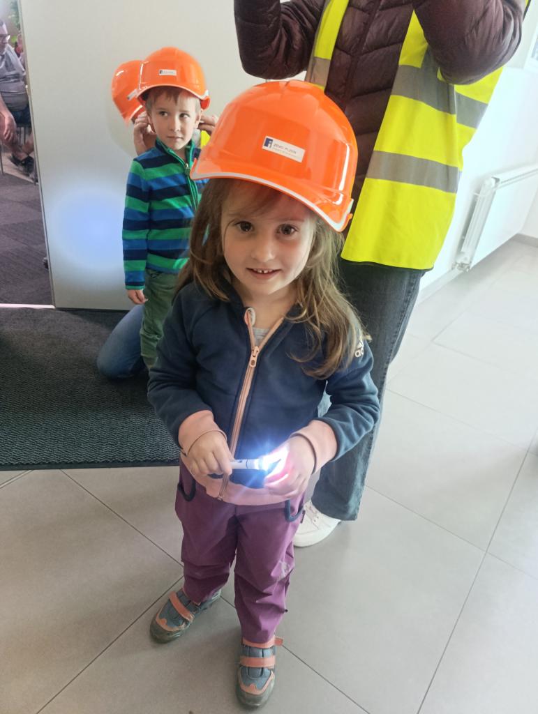 Tímto však náš výlet nekončil, opět jsme se „nalodili“ do našeho žlutého busíku a pokračovali směr Nevřeň, kde jsme si opekli buřtíky, posvačili, popili, využili také občerstvení a sociálního zařízení v Centru Caolinum a poté pokračovali lesem do kaolinového dolu. Před dolem na nás čekala paní průvodkyně, ochranné helmy, které nám všem mimochodem moc slušely, a v samotném dole také spousta informací nejen o historii, ale i o současnosti dolu – v roce 2018 se zde například natáčela pohádka Čertí brko a později také scéna z pohádky Tři princezny – přišli jsme si tedy na své všichni, jak děti, tak dospělí, a dokonce i paní průvodkyně, která si s námi v dole zazpívala (abychom vyzkoušeli zdejší skvělou akustiku).