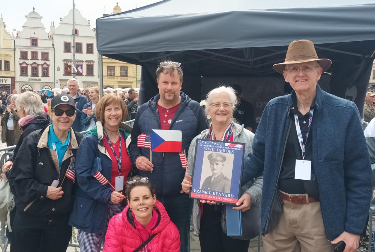 Katherine a Mark Tuckerovi poprvé zavítali do ČR v roce 2019. 29.4. 2025 přiletěli do Prahy podruhé. Ve čtvrtek 1. května přijeli do Dolní Lukavice, kde je provedl starosta obce Ing.Radek Hora. Přišli se podívat před zámek, kde byl vojenský tábor. V květnu 1945 zde ve vojenském táboře spal Katherinin otec plukovník Frank Kennard a strýc William Kennard. Poručík Frank Kennard se narodil v roce 1922 v Montclairu v New Jersey. Byl nejmladším ze tří synů, kteří všichni studovali na vysoké škole, když byl napaden Pearl Harbor. Všichni tři se zapojili do výcvikových programů pro důstojníky a stali se důstojníky.