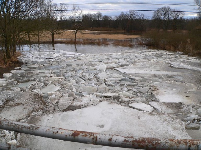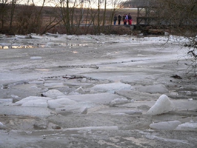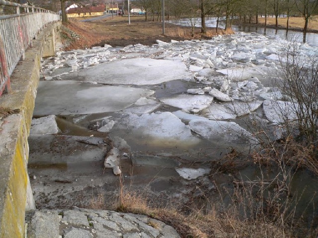 Ledové kry pod mostem v Dolní Lukavici