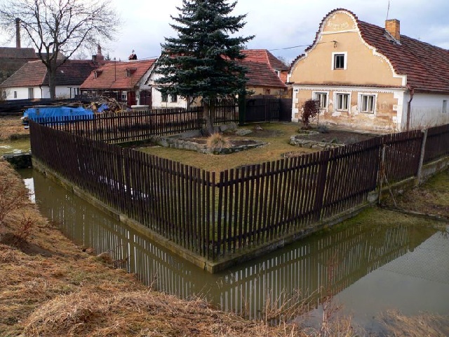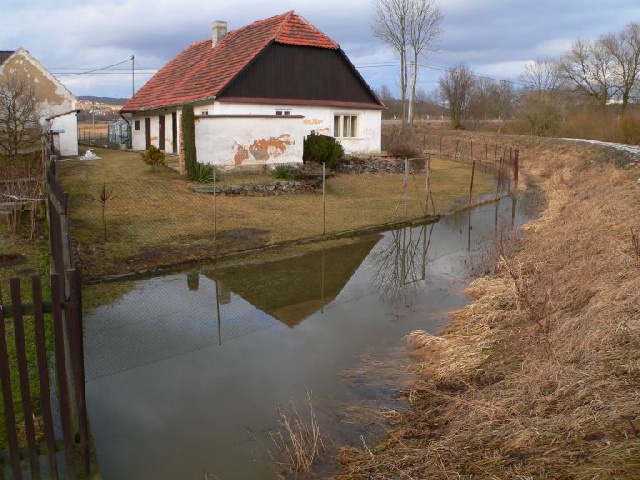 Jarní obleva u dolnolukavských stavení